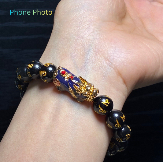 Natural Black Obsidian Bracelet with Color Change Pixiu Charm – Gemstone Beads for Men & Women | Unisex Feng Shui Wealth Bracelet