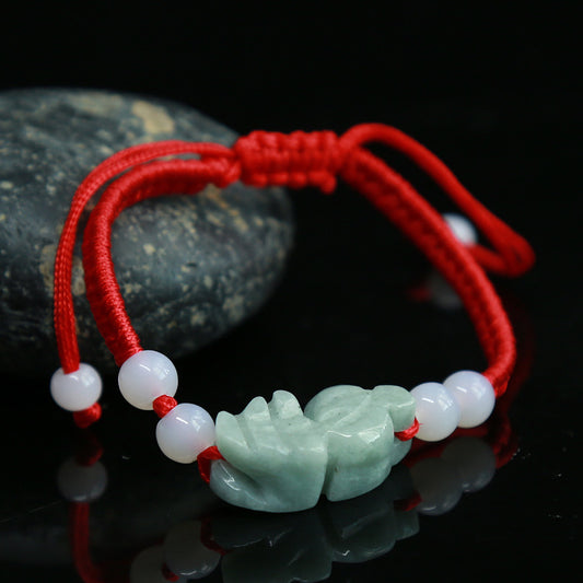 Handmade Natural Green Jadeite Jade Red String Bracelet – Abundance & Good Luck