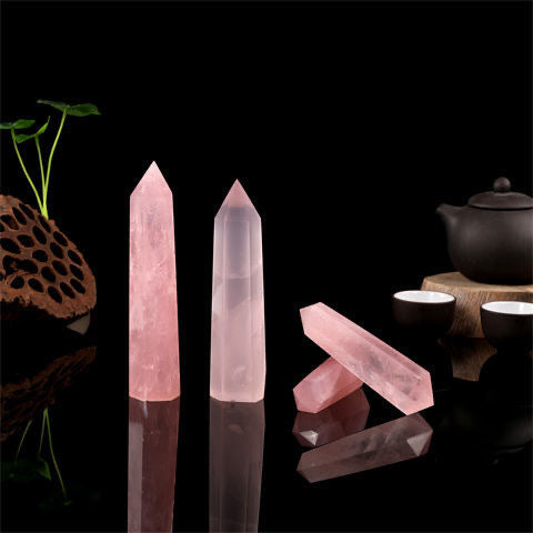 Natural Rose Quartz Crystal Point Tower – Healing Crystal Wand for Love, Peace & Harmony