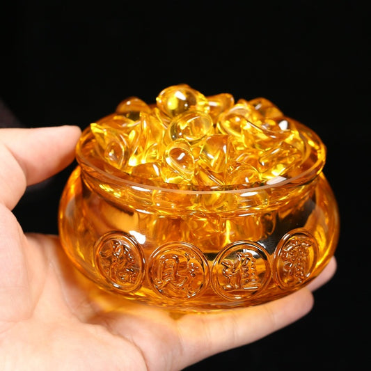 Feng Shui Citrine Treasure Bowl & Ingots – Wealth, Prosperity & Abundance Crystal Set