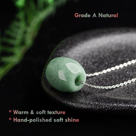 Certified Grade A Natural Jadeite Jade Necklace – Authentic Green Jade Bead Pendant with Titanium Chain | Wealth & Harmony Jewelry