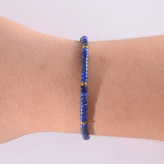 Men’s Lapis Lazuli Bracelet – Natural Blue Gemstone 4mm Beads, Gold Accent, Adjustable Minimalist Gift for Him