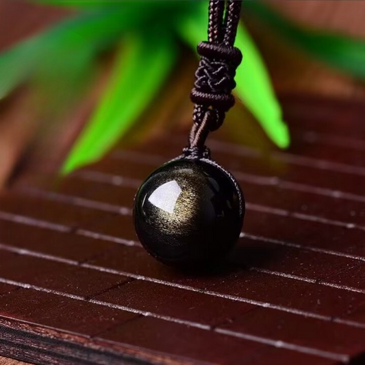 Men’s Feng Shui Gold Black Obsidian Protection Necklace – Natural 16mm Lucky Energy Pendant for Strength & Prosperity
