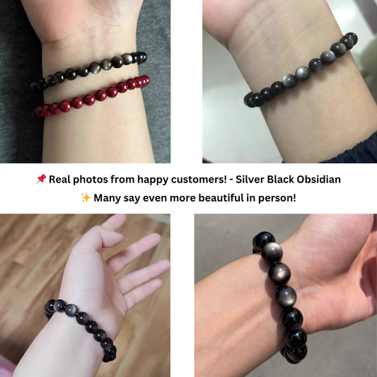 Natural 7A Grade Double-Eye Silver Sheen Obsidian Bracelet – Powerful Protection & Grounding Crystal Jewelry for Men & Women