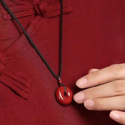 Natural Red Cinnabar Donut Pendant Necklace – High-Content Feng Shui Amulet for Wealth, Protection & Energy