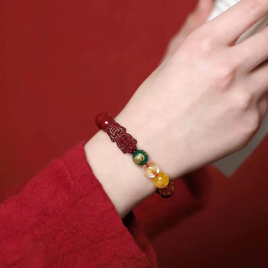 High-Content Cinnabar Pixiu Feng Shui Bracelet – Five Wealth Gods Symbol of Prosperity, Protection & Abundance (90% Natural Cinnabar Beads)