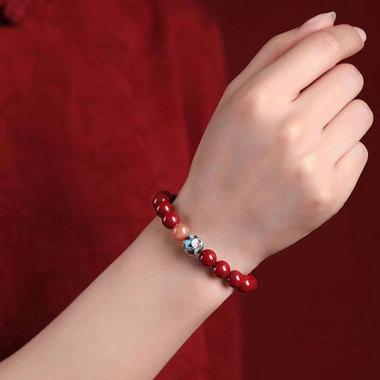 Red Cinnabar & Sunstone Prosperity Bracelet for Women – Lucky Wealth & Protection Gemstone Jewelry