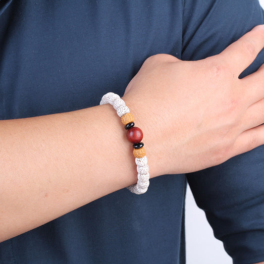 Natural White Bodhi Seed & Sandalwood Moon-&-Stars Bracelet – Unisex Natural Stone Meditation Jewelry