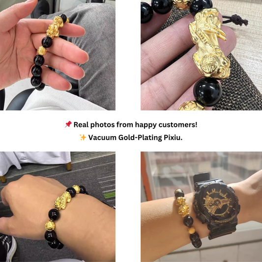 Natural Black Obsidian Pixiu Bracelet with Gold Pixiu – Feng Shui Wealth, Luck & Protection | Authentic Crystal Energy Jewelry