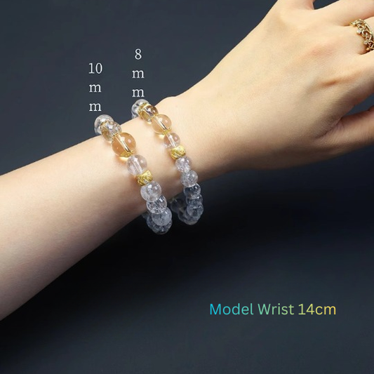 7A Grade Clear Quartz Bead Bracelet with Citrine Accent – Natural Crystal Stretch Bracelet 8mm 10mm Unisex