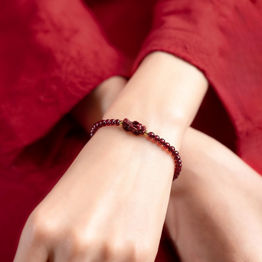 High-Content Cinnabar Pixiu Wealth Bracelet – Natural Red Garnet Feng Shui Prosperity Jewelry