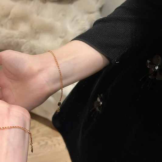 Natural Red Garnet Bracelet for Women – Dainty Adjustable Red String Jewelry with Golden Beads | Modern Gemstone Energy Gift