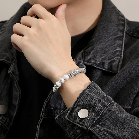 Natural Turquoise Pixiu Feng Shui Bracelet – Yin Yang Protection & Wealth Luck Jewelry (Unisex)