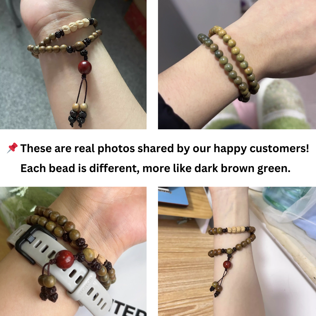 Natural Green Sandalwood Mala Bracelet – 6mm Beads, Aromatic & Calming Energy